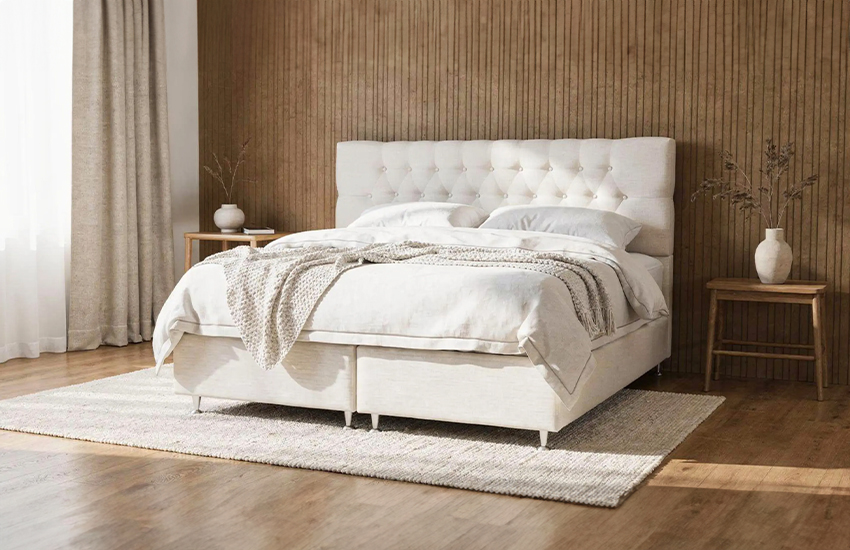 Kontinentalseng 180x200 cm er en klassisk dobbeltseng. Hos oss kan du velge din nye kontinentalseng i fine beige og grå toner. Vi tilbyr kontinentalsenger i beige og mørk fløyel. Er du den som liker sterke farger, beige bouclè stoff eller ønsker du en seng i cordfløyel? Våre senger kan du få i mange ulike farger og tekstiler.