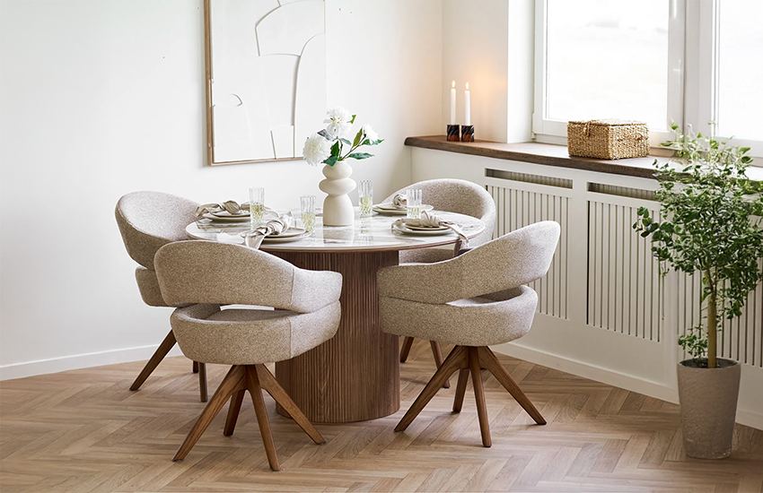Living Outlet fokuserer på kvalitet til uslåelig priser. Produktene du finner under spiseplassen er laget av materialer som solid heltre, og finér av eik og ask. Klikk inn på produktene for å lese mer om mål, materiale og vedlikehold.
