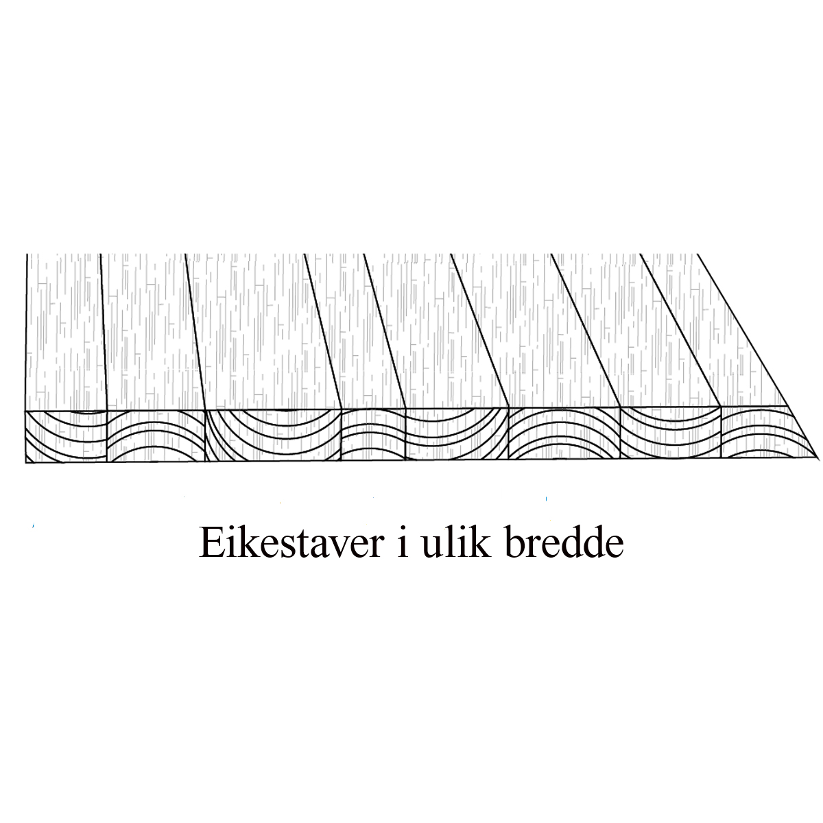 Bordplate av heltre massiv eik. Her kan du velge ulike oljede overflater. Selve eikestavene kommer i ulik bredde. Dette gir mer spill og liv i bordet.
